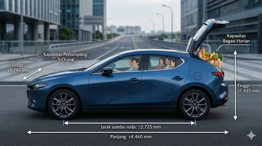 Dimensi ini membuat Mazda 3 Hatchback stabil saat kecepatan tinggi namun tetap lincah di perkotaan.