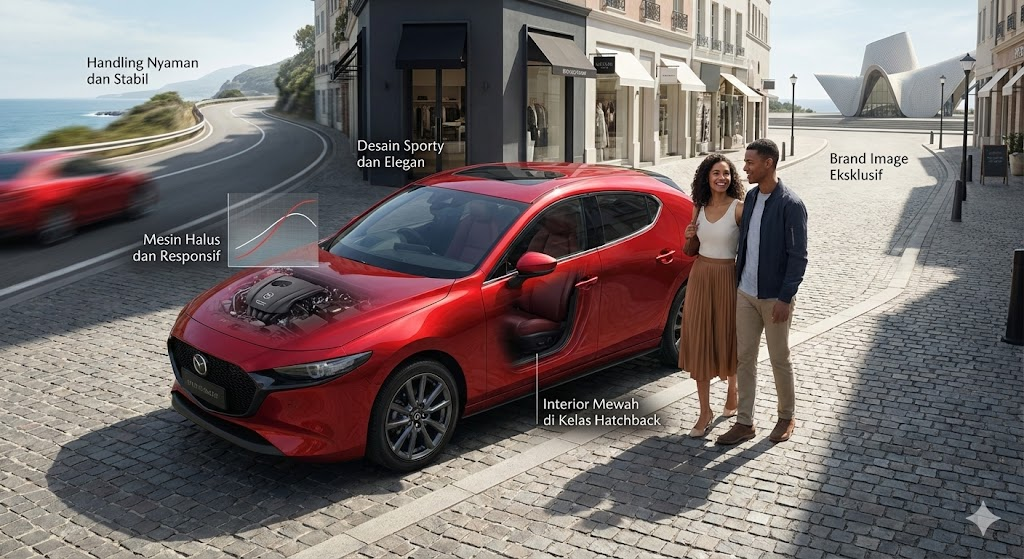 Mazda 3 Hatchback adalah pilihan ideal bagi mereka yang menginginkan hatchback sporty dengan kenyamanan dan kemewahan setara mobil premium. Cocok untuk anak muda, profesional, hingga keluarga kecil yang menginginkan mobil harian bergaya dan berkualitas tinggi.